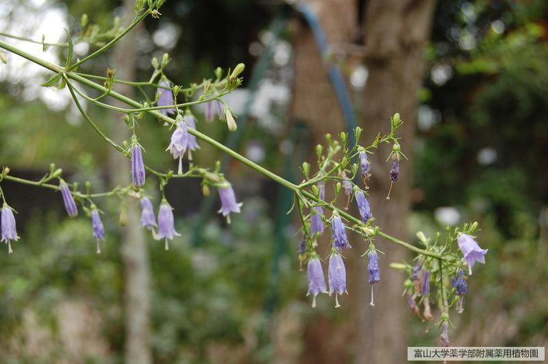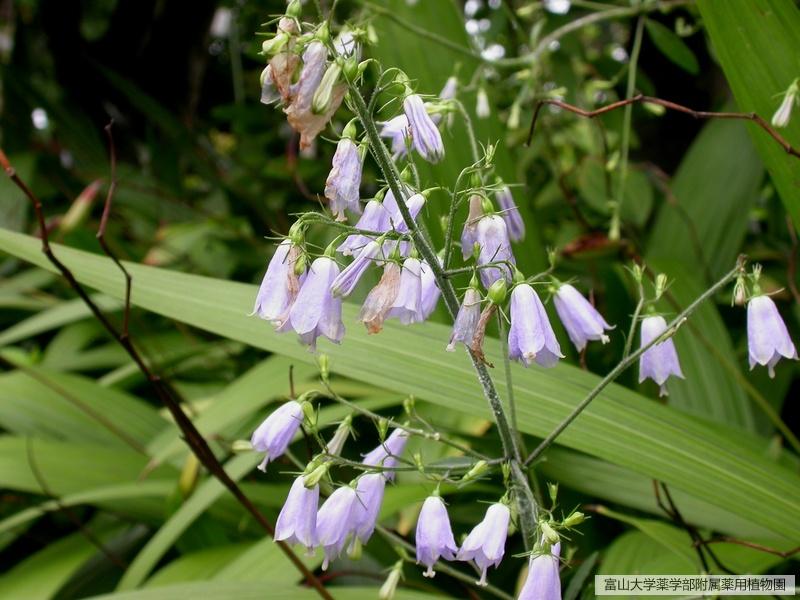 花期は初秋頃で、茎の頂部に淡紫色の釣鐘状の花をつける