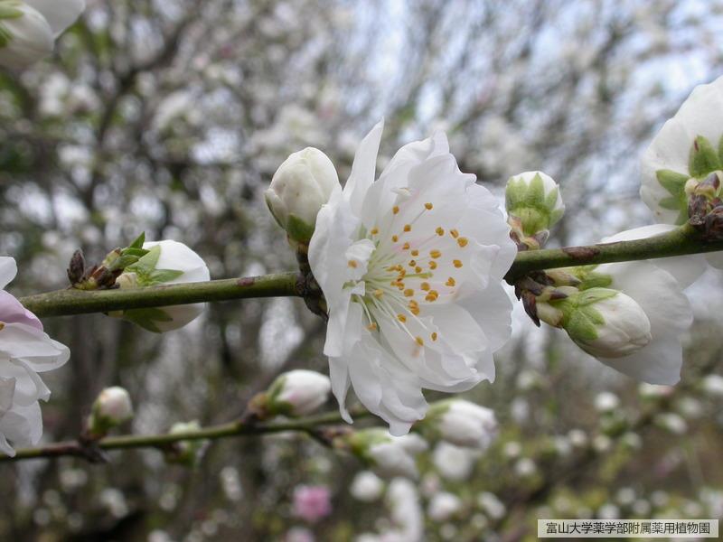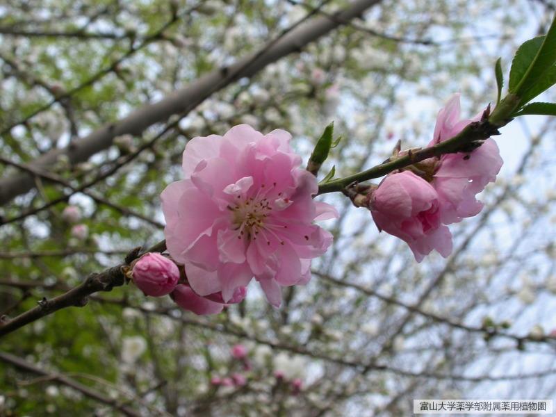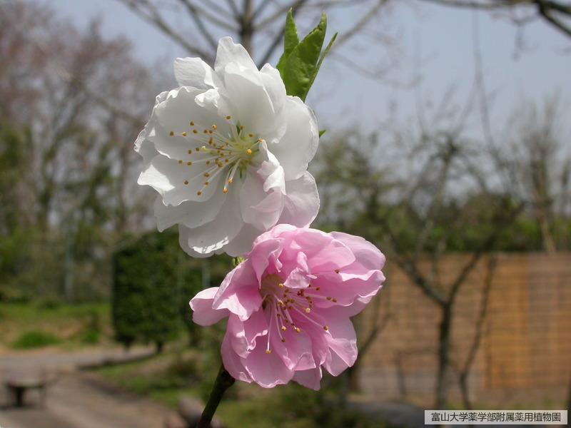 モモの園芸品種で江戸時代からの品種と言われ、八重咲で赤花と白花を咲き分ける