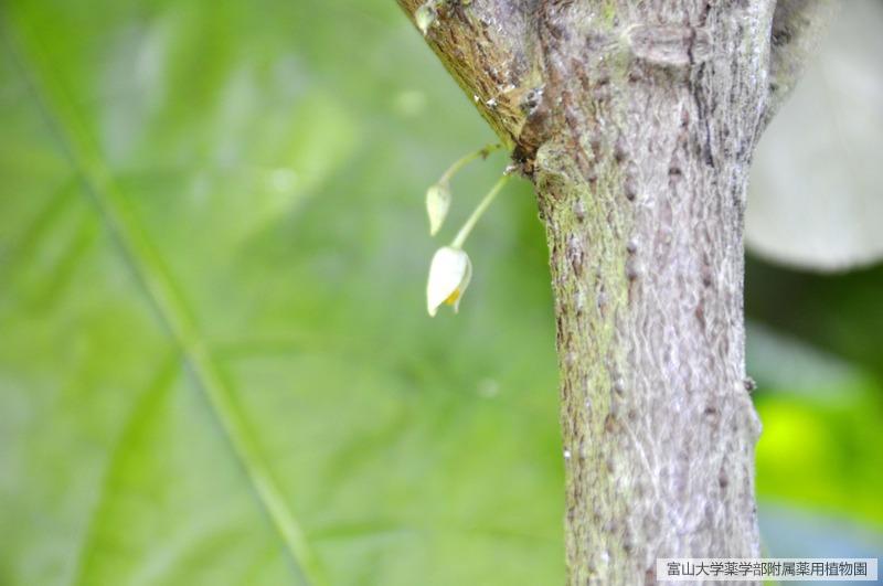 植物の幹から直接小さい白い花が咲く
